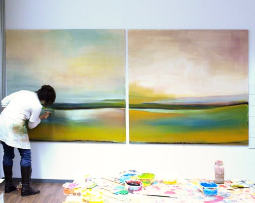 In der Bildanfertigung werden Weite, Leichtigkeit und Klarheit mittels Form und Farbe auf die gewünschte Wand gebracht, mit der persönlichen Auftraggeber-Note